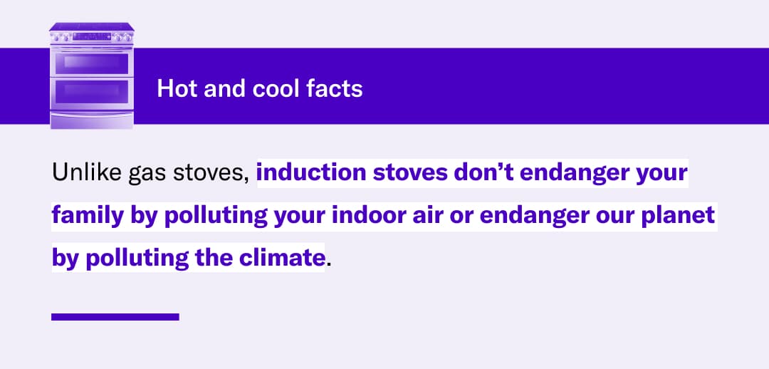Induction stoves are the best way to cook food, keep pollutants out of the air, and keep your family healthy. Induction stoves are the best way to cook food, keep pollutants out of the air, and keep your family healthy. Electrify your home with Rewiring America's free electric cooking guide. Check it out.